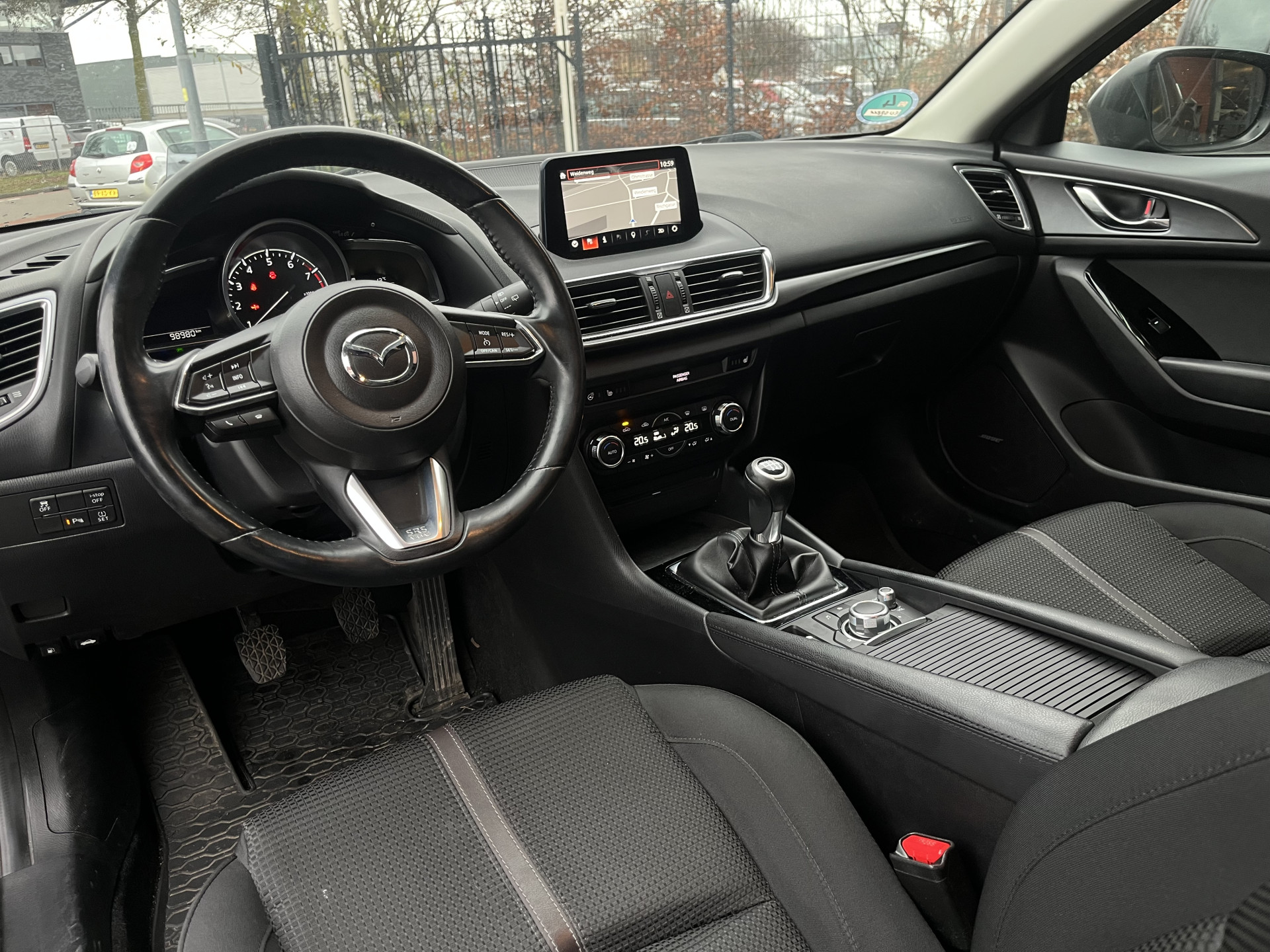 De nieuwste veiligheidssystemen komen in deze Mazda 3 samen. In het instrumentarium ziet u tijdens de rit ook de belangrijkste verkeersborden aangegeven, die de auto automatisch voor u leest. Keep your lane? Het Lane-keeping systeem zorgt er automatisch voor. Voertuigen of personen buiten uw zicht kunnen gevaar opleveren. De actieve dodehoekdetectie waarschuwt direct. Verder is deze auto uitgerust met head-up display, forward collision warning system, hill hold functie, brake assist, vermoeidheidsherkenning en bandenspanningcontrolesysteem.