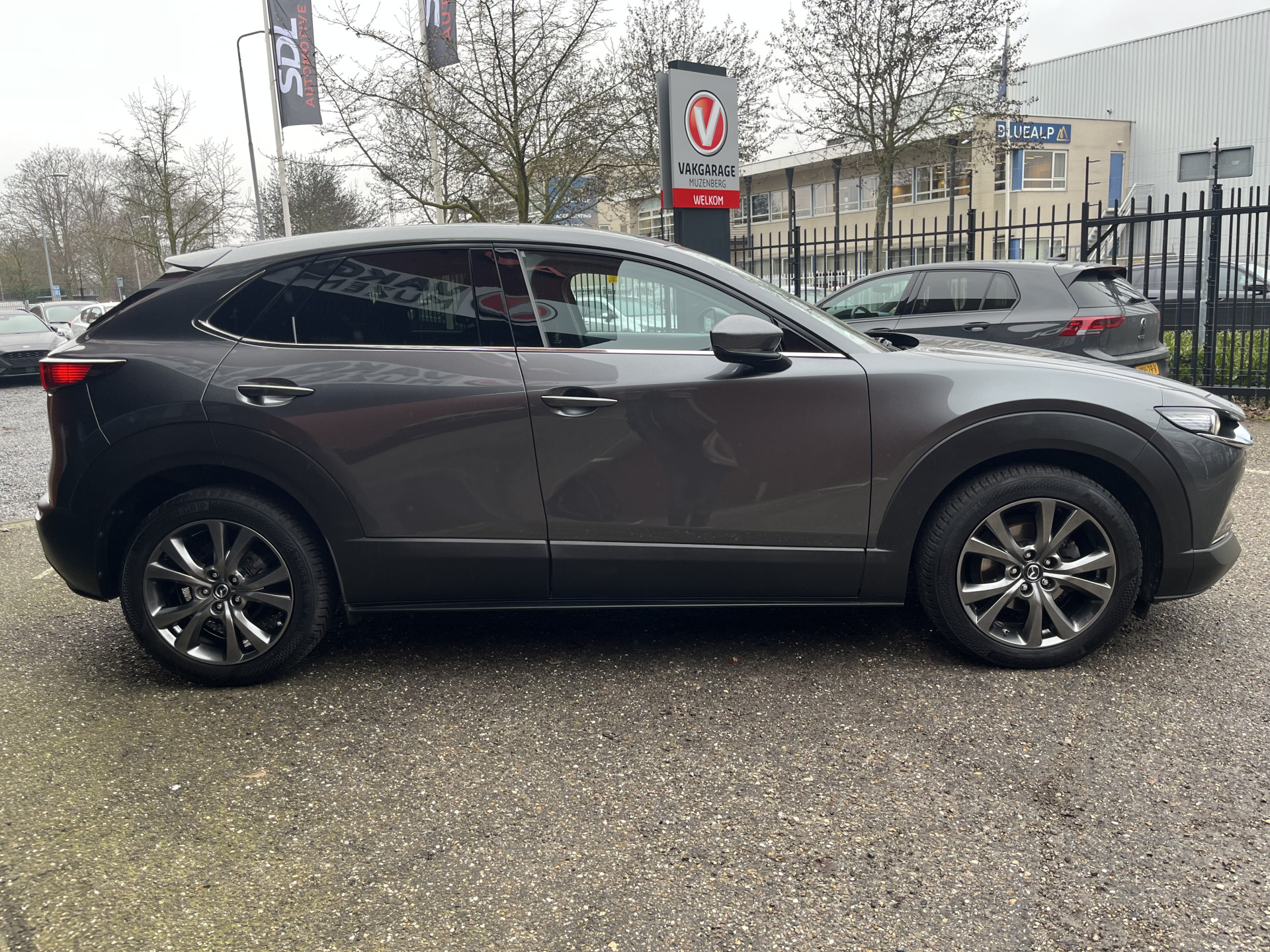 Zoals u mag verwachten van deze Mazda CX-30 is hij uitgerust met een reeks aan actieve veiligheidssystemen. Onderweg zorgt verkeersborddetectie ervoor dat u geen waarschuwingsbord mist. Het Lane-keeping systeem doet precies wat nodig is: waarschuwen en corrigeren bij onbedoelde overschrijding van de rijstrooklijnen. Deze Mazda CX-30 blijft altijd alert. Zo wordt gebruik gemaakt van forward collision warning. Bij het mogelijke risico op een aanrijding met een voertuig voor u, slaat het systeem alarm. In deze Mazda vinden we verder een head-up display, dodehoekdetectie, hill hold functie, brake assist, vermoeidheidsherkenning en bandenspanningcontrolesysteem.
