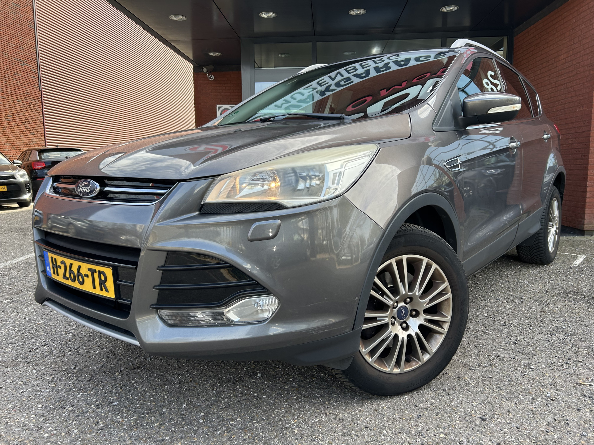 U ziet het meteen aan zijn krachtige design, de Ford Kuga is een auto die kwaliteit uitstraalt. Onderhuids vindt u die kwaliteit terug in de geavanceerde techniek, die deze auto zijn sportieve rijeigenschappen geeft. De aandrijving komt voor rekening van een benzinemotor en een automatische transmissie. Doe maar luxe! Neem plaats in de verwarmbare voorstoelen en voel de weldaad in koude dagen. Rijden met pit? Geen punt! De sportstoelen geven steun en stevigheid! Met een druk op de knop gaat de elektrische achterklep open. Natuurlijk behoren 18 inch lichtmetalen velgen, halflederen bekleding, getint glas en verstelbare lendensteunen ook tot de uitrusting van deze complete auto.